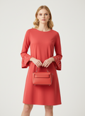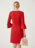 kolları inci detaylı kırmızı elbise