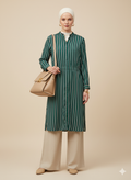 Gizli düğme detaylı siyah beyaz şerit detaylı yeşil tunik