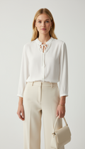 yakası fırfır ve bağlama detaylı beyaz bluz