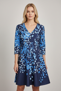 yaprak desenli mavi elbise